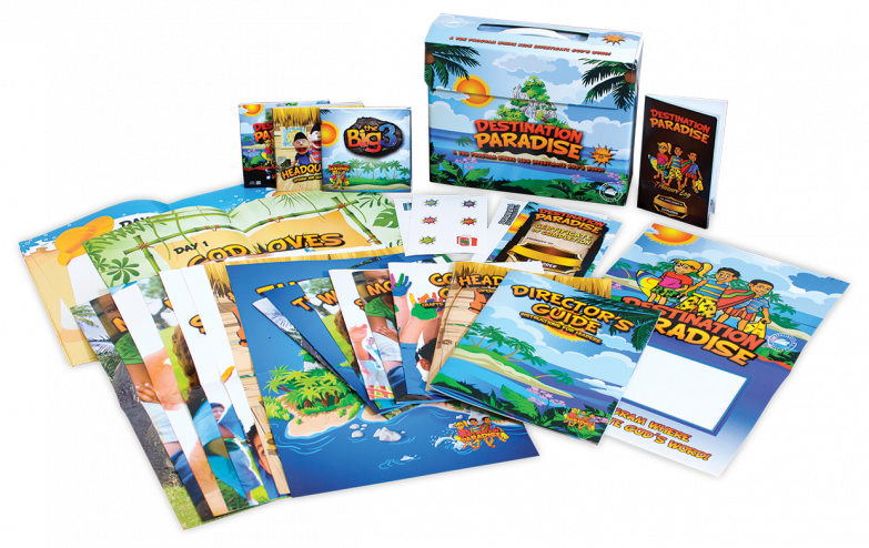 Welcome to Destination Paradise, where kids investigate God's word. Each day the kids will investigate a different Bible truth through Bible stories, nature, crafts, games, and more. Through this VBS program kids will learn the story of salvation from the birth of Jesus to the promise of our place in paradise which we know as Heaven and the New Earth. All aspects of this VBS program point kids to God as the Savior with a plan for their lives.