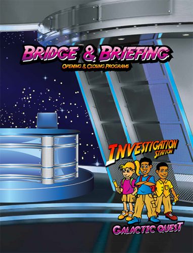 Each day begins and ends with a general session. The songs and memory verse are introduced at the opening program. This is also where the children meet Sam and Alex, the lead and assistant investigators; Hannah, the bookkeeper; and the Galactic Quest crew. At the closing program the clues are all brought together and the kids review the evidence that God loves us and has a plan to save us.