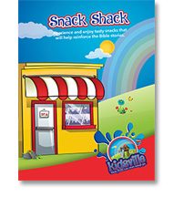 Welcome to the Snack Shack. This is an essential and important part of your VBX. Some kids come very hungry, so if your church has the ability to serve a meal, that would be great. Food banks, local businesses, or church members may be happy to supplement your daily needs. We've made efforts to choose healthy snacks that will reinforce your lesson plans. For those of you who have limited time, you may choose to make a snack bag and serve during crafts or another part of your program.